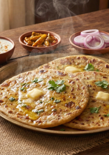 This traditional Gobi Paratha is made the authentic grandma’s way using freshly grated cauliflower, onions, and aromatic spices The stuffing is gently cooked to release flavour, then filled into soft dough and cooked on a tawa until golden and...