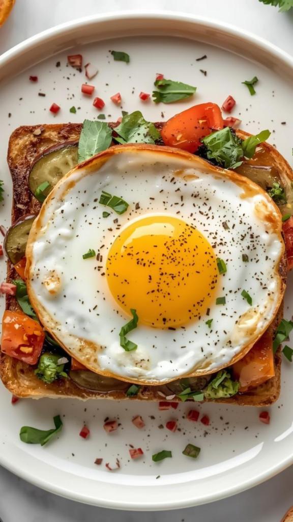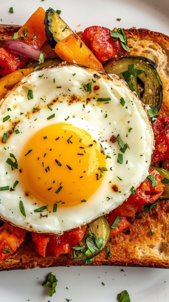 This air fryer veggie egg toast is a simple and satisfying recipe made with everyday ingredients and minimal effort. Eggs are whisked with seasoning, soaked into bread, and topped with a colorful mix of onions, cherry tomatoes, chilies, olives, herbs, and cheese. Everything is cooked gently in the air fryer until the toast is crisp on the edges and the topping is set and golden. It is a quick homemade dish that works well for breakfast, brunch, or a light meal.
