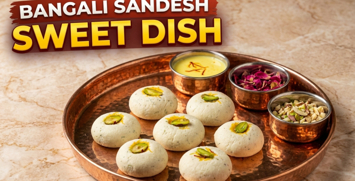 Bengali Sandesh Mati is a delicate fusion sweet that blends traditional Bengali sandesh with the crisp, molded style of mati sweets. Made from fresh chenna, lightly sweetened and flavored with cardamom and saffron, this dessert is soft, aromatic, and perfect for special occasions or festive treats.
