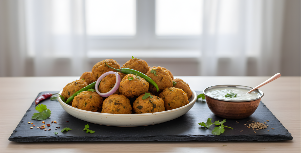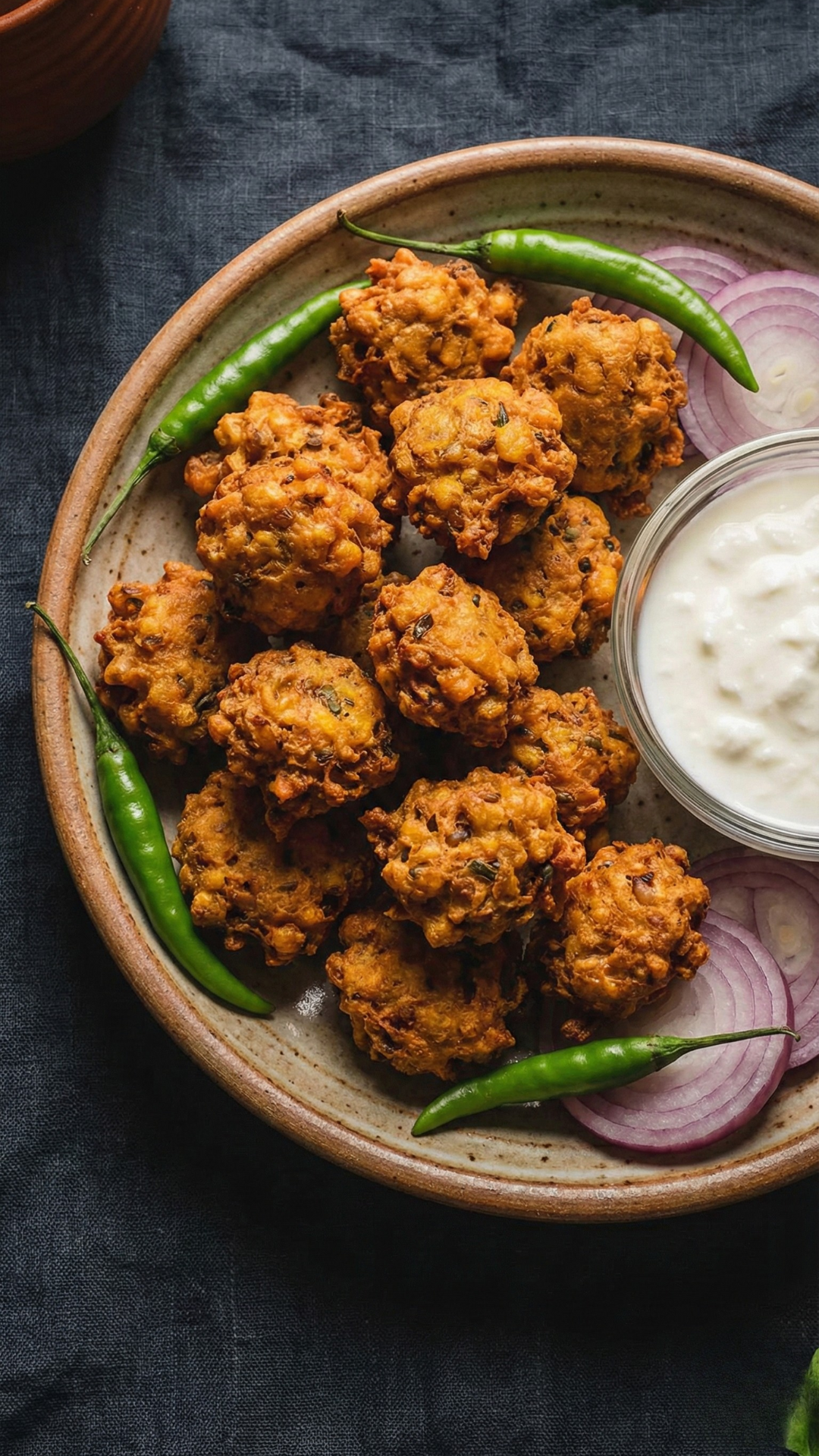 These crispy Moong Dal Goras are golden, crunchy fritters packed with vegetables and warming spices. Perfect for rainy days, tea-time snacks, or as a savory treat for any occasion. Enjoy them on their own or pair them with chutney, sour cream, or even add them to a curry.