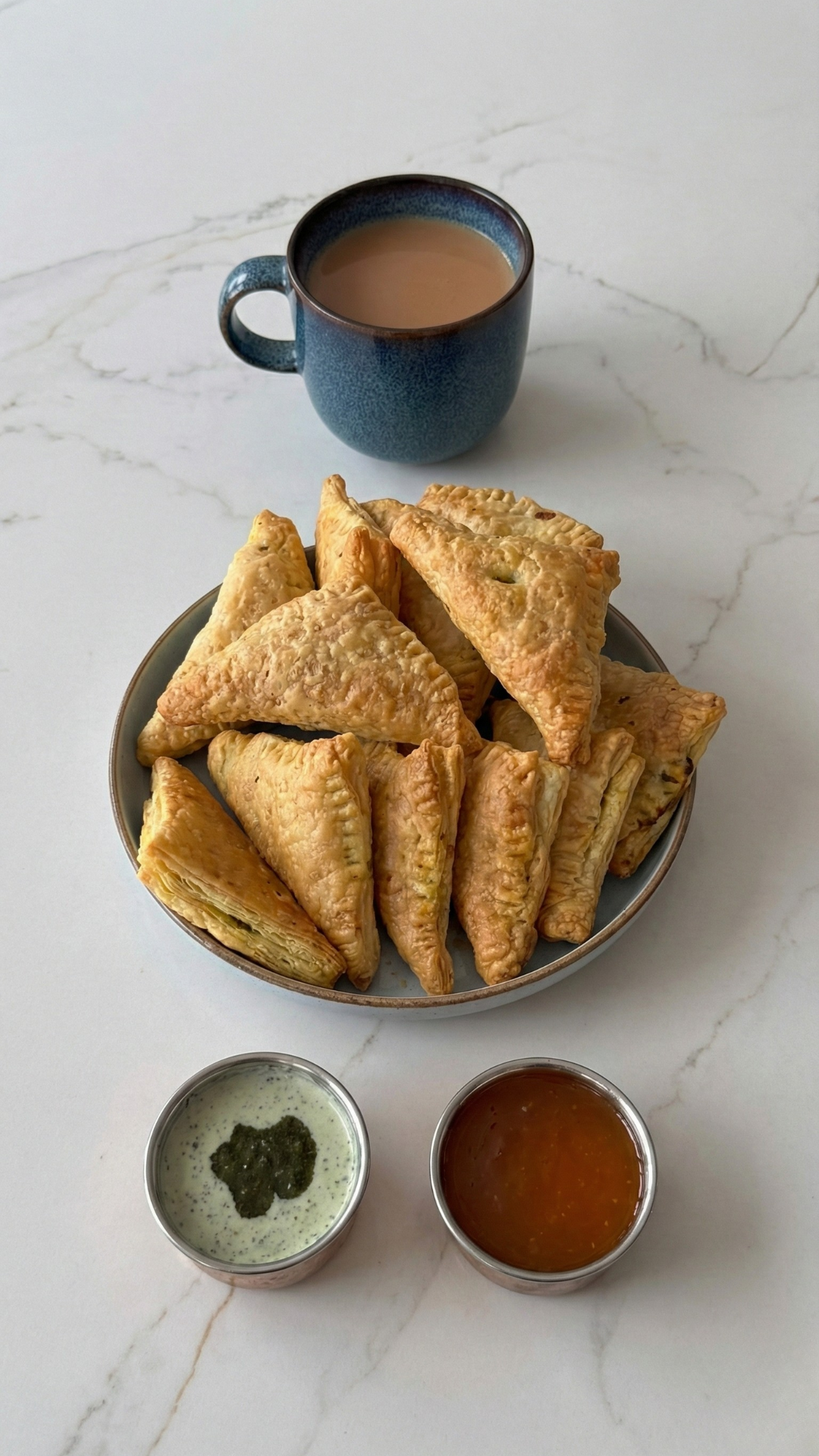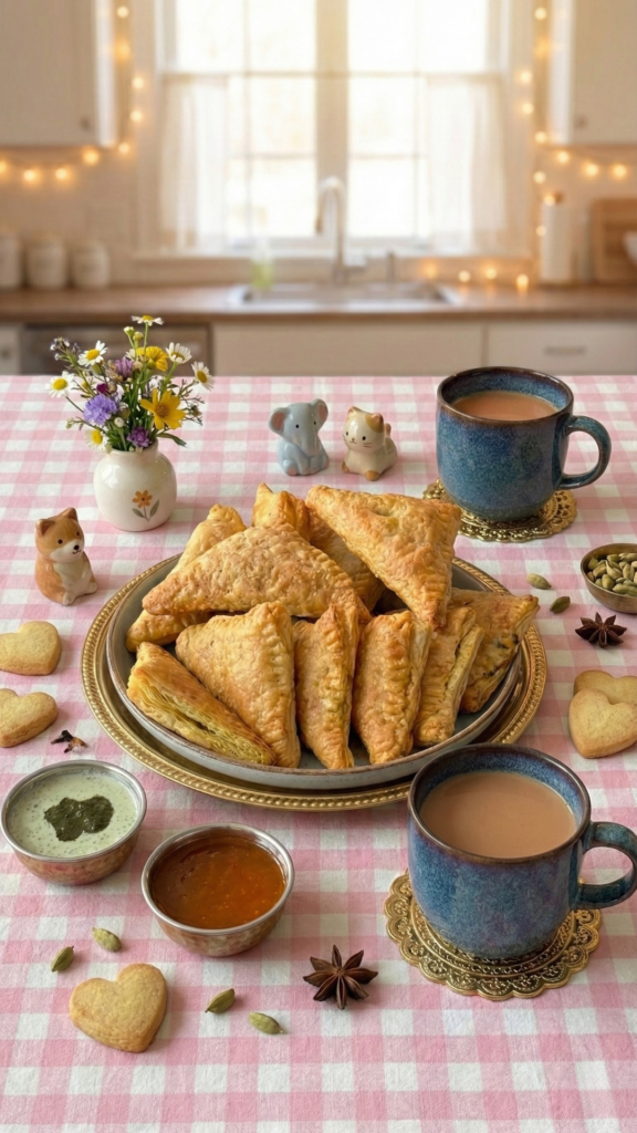 These oven-baked puff pastry samosas are a healthier alternative to deep-fried samosas. They are crispy on the outside, soft and flavorful on the inside, and perfect for snacks, parties, or tea time. Easy to make and packed with classic Indian spices.