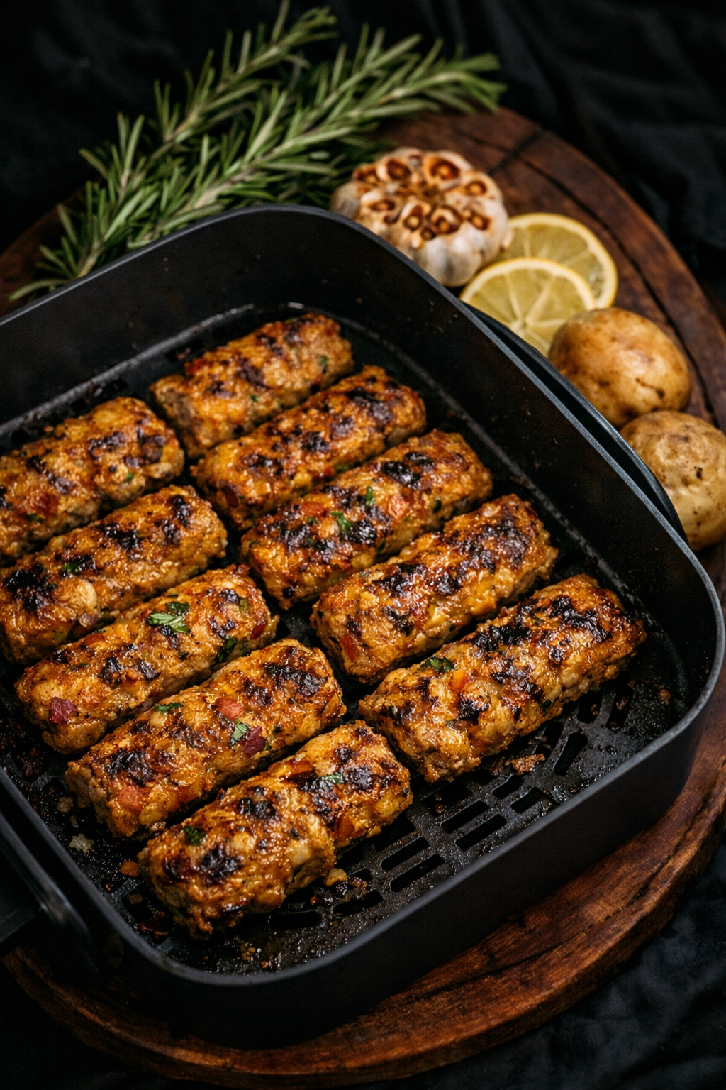 Carefully place the shaped kebabs into the air fryer basket, leaving some space between them if possible. Cook for the initial 10 minutes, allowing the kebabs to firm up and begin browning. Avoid overcrowding to ensure even airflow and cooking.