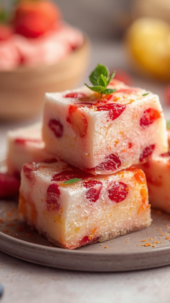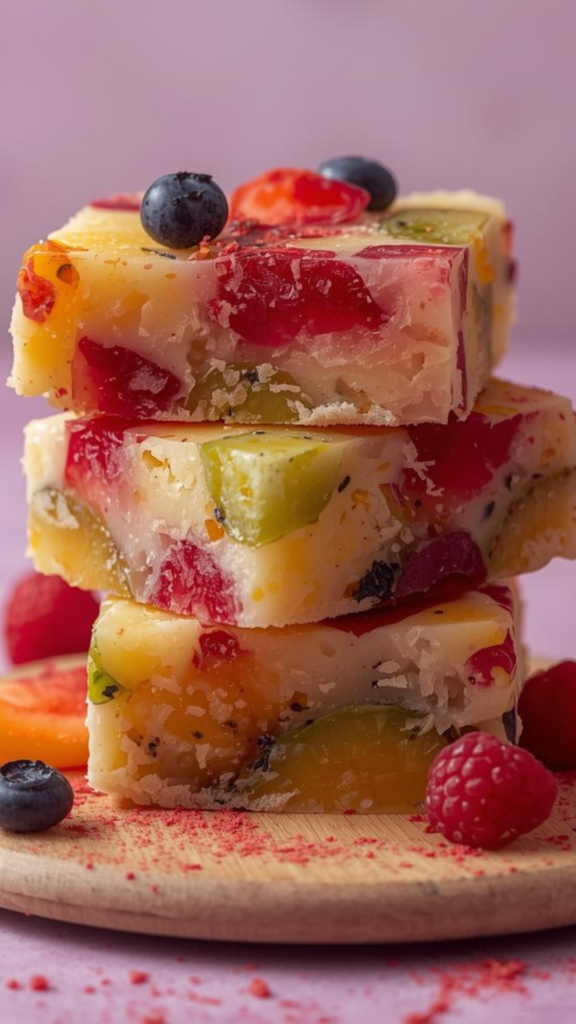 Mixed Fruit Barfi is a colorful Indian sweet made with milk solids, ghee, nuts, and bits of fruit. It has a soft, creamy texture with chewy fruity bites and a mild, balanced sweetness. This festive mithai is ideal for celebrations, gifting, or serving with tea.