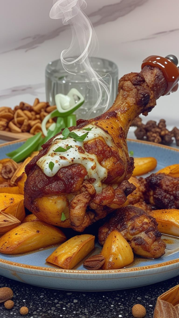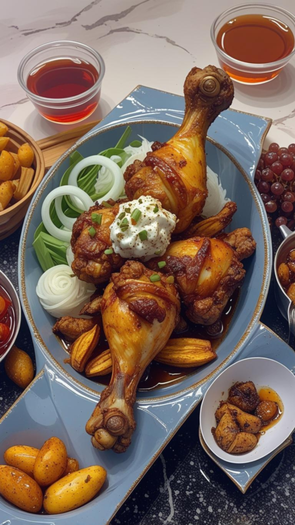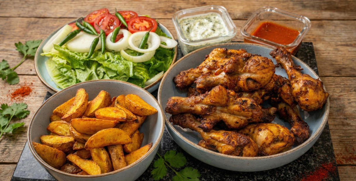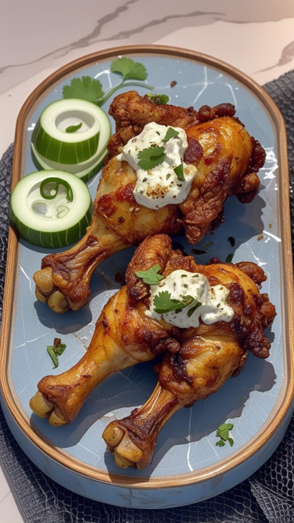 Place the tray on the lower shelf of the preheated oven and bake until the chicken is cooked through and nicely browned. The drumsticks should look crisp on the outside and juicy inside, with a rich color from the spices. Cooking time may vary slightly depending on your oven.