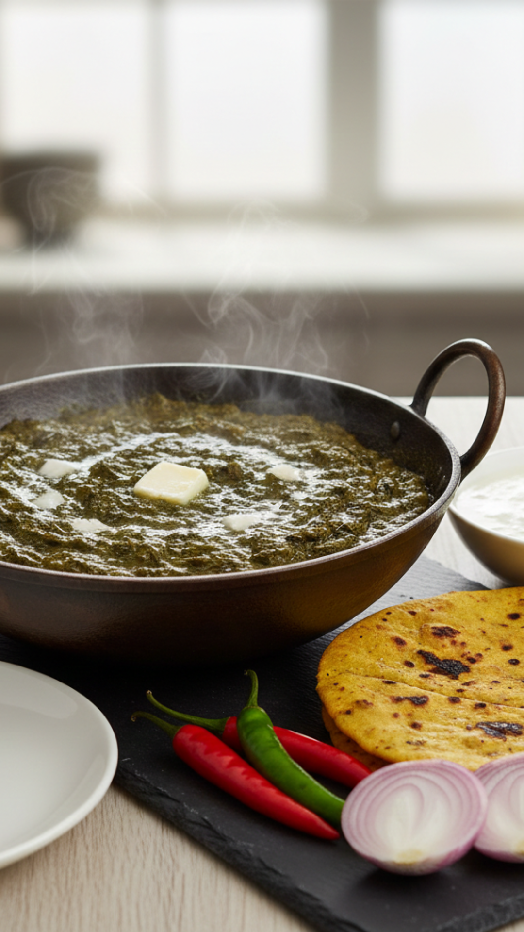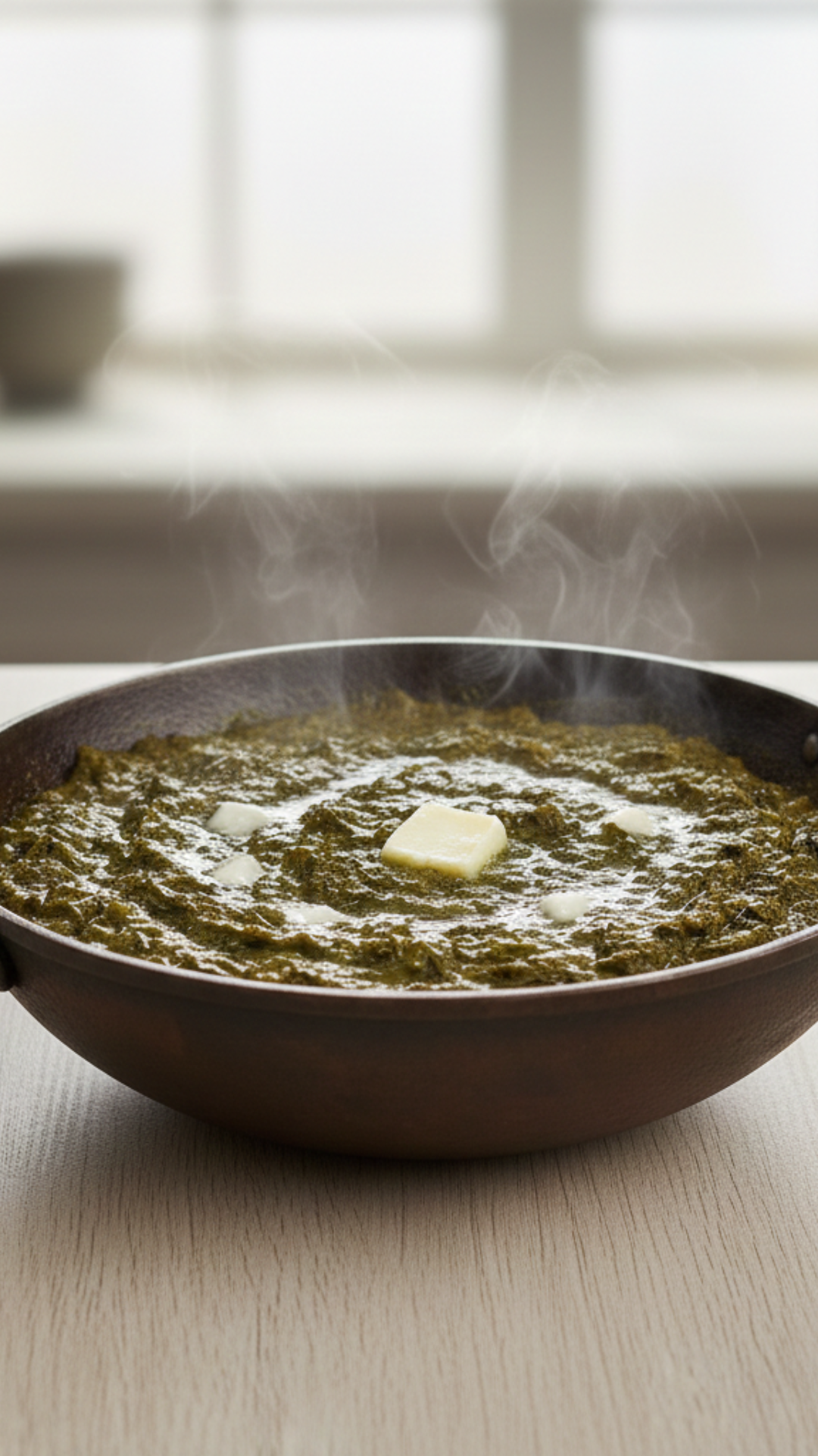 This traditional Punjabi saag is cooked the authentic village way, just like our grandparents used to make it. Slow-cooked on low heat, finished with makki ka atta (corn flour) and a rich onion-garlic tarka, this saag is full of nostalgia, flavour, and warmth.